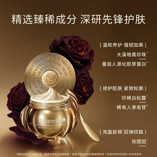 梵蜜琳抗皱紧致面霜:这款面霜主打28天抚纹透亮,采用自研玫瑰提因,能够有效提拉紧致,提升肌肤弹力,减少皱纹。其成分中还包含大溪地黑珍珠和珍稀白松露,深层修护肌肤。