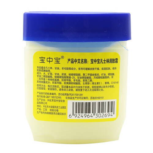 宝中宝的另一款明星产品,凡士林润肤霜,同样备受欢迎。它以经典的蓝盖设计和超高的性价比在市场上占据了一席之地。用户普遍反映,其滋润效果出色,能够有很大效果预防干燥和肌肤裂纹,成为家庭护肤的必备良品。